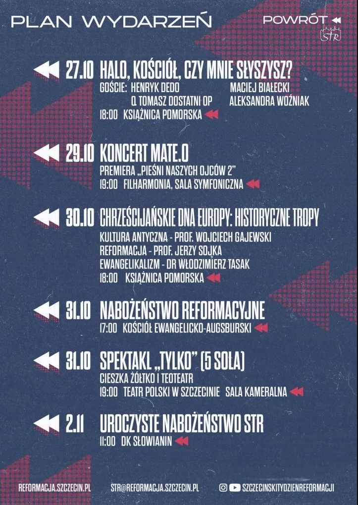 • 27.10 – 02.11.2025r. - Kolejny Szczeciński Tydzień Reformacji. Serdecznie zapraszamy do udziału w zaplanowanych wydarzeniach.